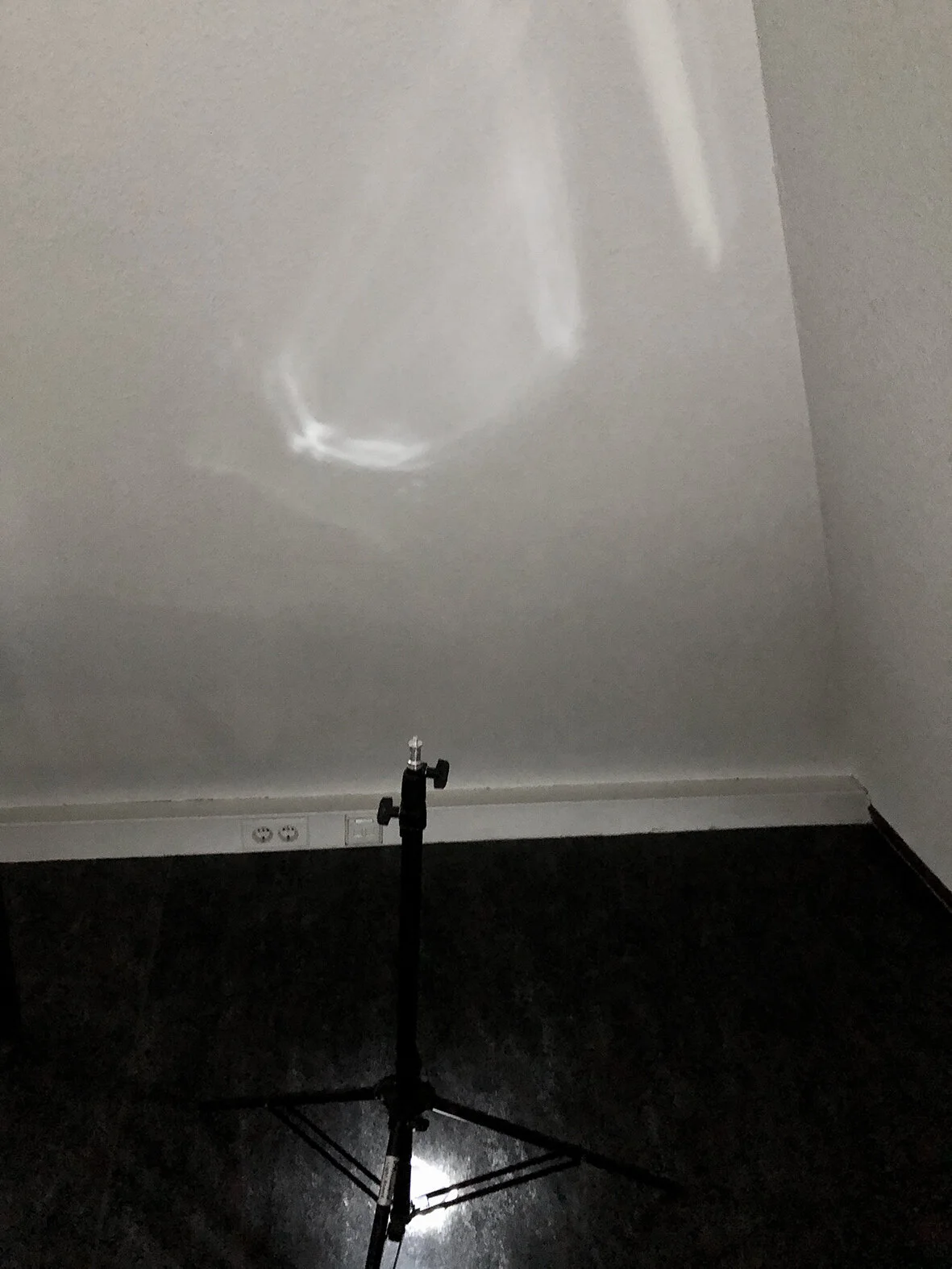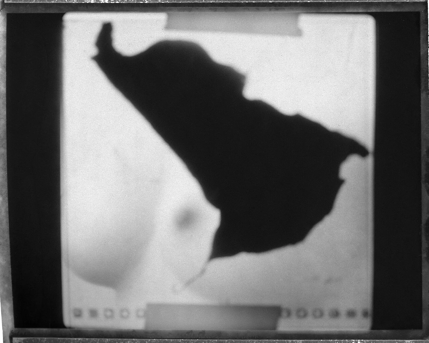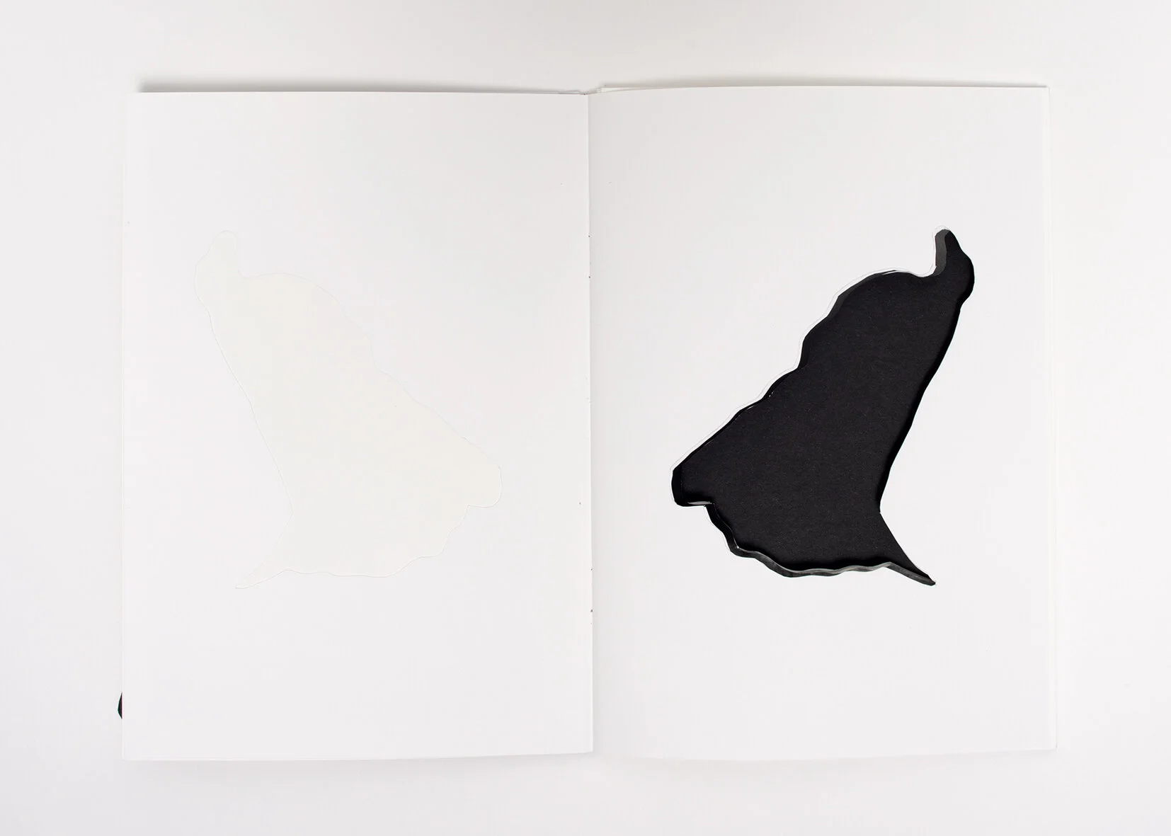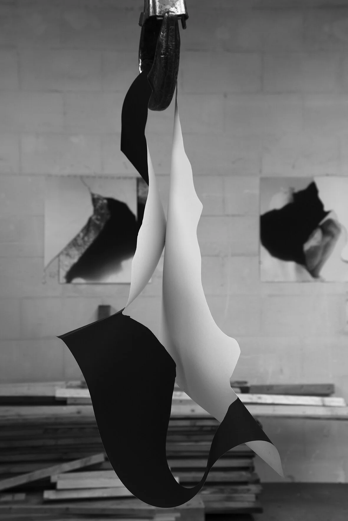 I started building in my blind spot into my camera, because that is how I look as photographer, through my camera. From this trial and error phase, I started to cut out the spot, positive and negatives shapes, filming the spot, blowing it up until big proportions, using it rest material and placing spot on spot. Trying to find his shape and experimenting with moving it.